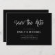 Um simples cartão de anúncio de casamento moderno e elegante para salvar a data. Personalize este convite de casamento minimalista preto e branco para ter seus detalhes pessoais e mensagem.