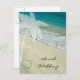 Anuncie seu casamento casual e sofisticado à beira-mar ou em uma ilha com o cartão postal de anúncio de casamento Tropical Beach Wedding Save the Date. Personalize-o com os nomes da noiva e do noivo, data e local específicos da cerimônia de casamento. Este convite de casamento personalizado com tema de praia apresenta uma fotografia da natureza cênica do oceano turquesa ou azul aqua em uma praia de areia branca com uma palmeira e um desenho espiral adornando o canto.