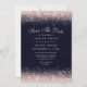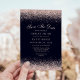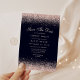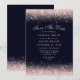Anuncie seu casamento com este elegante cartão Save the Date apresentando um luxuoso fundo navy e uma cascata de confetes cintilantes em rosa. O design moderno e minimalista é perfeito para casais que apreciam um toque de brilho e sofisticação. Personalize-o com seus nomes e data de casamento para criar um souvenir único que seus convidados irão guardar.