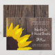 Defina um tom casual e sofisticado para o seu casamento iminente com o charmoso Anúncio de Save the Date de casamento rústico com girassóis amarelos e madeira de celeiro. Este anúncio informal e elegante de casamento personalizado em estilo rancho apresenta uma fotografia floral pintada digitalmente de um girassol amarelo e um fundo de madeira de celeiro desgastada marrom.