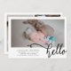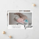 Cartão-postal de anúncio de nascimento do bebê com fotografia moderna. Design com um roteiro de saudação, foto de solteiro do bebê, estatísticas de natalidade, data e nome na frente e 3 fotos no verso.