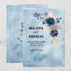 Anúncio de compromisso minimalista em aquarela azul com arranjo floral azul real. Layout simples e limpo com imagem na parte de trás. Faça upload de sua própria imagem ou foto para torná-lo único. Altere as fontes, cores e textos. Com a opção de baixar e enviar seu anúncio eletronicamente.