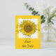 Anuncie seu casamento com tema de jardim de verão ou outono com o belo cartão postal de Anúncio de Compromisso do Girassol Amarelo. Este elegante cartão personalizado de casamento com flores apresenta uma fotografia floral digitalmente aprimorada de um girassol em flor sobre um fundo amarelo e branco.