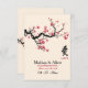 Uma maneira simples, porém encantadora de anunciar a data do seu casamento. O cartão apresenta um desenho em tinta preta de um ramo florido com escrita japonesa e a palavra "Amor". (FP)