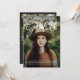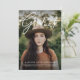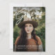 Um cartão de anúncio de conclusão de curso com fonte manuscrita, com nome e detalhes da formatura. A parte traseira tem dois espaços para fotos com detalhes adicionais. Clique no botão de edição para personalizar este design.
