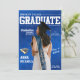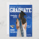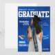 Anúncio de formatura em estilo de revista com foto substituível de corpo inteiro e informações editáveis da cerimônia, nome da escola, ano de formatura e mais.