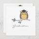 Cartão de anúncio personalizado de convite para a graduação, com uma coruja marrom vestindo um chapéu de quadro. Adicione e personalize sua própria mensagem e detalhes. Adequado para festas de formatura, festas de fim de mandato e qualquer outra festa ou celebração.