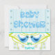 Anúncio de chá de fraldas. Convide sua família, parentes e amigos para a sua festa de chá de fraldas com este belo convite com duas adoráveis pássaros azuis em um galho de limão com flores azuis. As palavras Chá de fraldas são escritas em uma linda fonte azul com corações em fundo listrado azul.