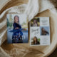 Anuncie sua formatura em estilo com este moderno convite fotográfico! Apresentando um design ousado com uma foto grande na frente e mais três atrás, esta placa mostra seu marco maravilhosamente. Perfeito para formandos segundos graus ou universitários, é uma maneira única e pessoal de compartilhar sua conquista com os entes queridos. Celebre seu sucesso com um anúncio elegante e memorável!