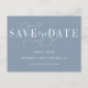 Cartão Postal de Anúncio de Data de Casamento em Azul Empoeirado com Caligrafia Moderna e Estilosa