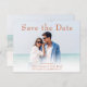 Foto moderna de casal Anúncio de aviso de data de salvamento de casamento cartão plano com informações do site, fonte laranja terracota.