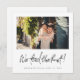 Este simples e na moda moderno anúncio de casamento de fotos, anunciado com o elopemento de cartas planas, modelo apresenta 'Nós amarramos o nó!' em preto em um roteiro moderno que se sente quente e familiar. Este elemento do design não pode ser alterado. Quando você substitui nossos nomes de exemplo e data abaixo dela por sua própria, você também pode mudar a fonte e a cor para se adequar ao seu estilo. A cor padrão para seus nomes e data é preta, enquanto usamos apenas nomes no nosso texto de amostra, você pode adicionar um sobrenome, ou 'Sr. s e Sra....' e você também pode editar o símbolo '&' entre os nomes para mostrar um símbolo '+' ou outra coisa. Definimos os cantos nítidos padrão como padrão, mas este design também parece excelente com cantos arredondados, então tente ambos os modos de edição para ver quais o capturam! Em ambos os lados, tornamos o fundo transparente para deixar a cor do papel simplesmente servir como o tom base. Você pode editar isso e escolher uma cor em um ou em ambos os lados, se preferir. Colocamos algum texto de marcador de posição no verso para que você exclua e substitua por sua própria mensagem, com ou sem seus nomes, se você quiser assinar manualmente quando receber os cartões. Mas você pode simplesmente optar por excluir nosso texto de marcador de posição e deixar o vazio de trás completamente para que você possa escrever uma mensagem manualmente em cada cartão e assinar seus nomes. Em qualquer caso, lembre-se de que há um texto de marcador de posição no verso, bem como na frente, e apague todo o nosso texto de amostra/marcador de posição em ambos os lados do cartão, assim como nossa foto de exemplo! A cor do texto no verso é uma cinza muito escura que é na sua maioria negra, mas você pode mudar a cor, a fonte e o tamanho do texto. Torne este anúncio encantador de elopemento de casamento único seu com as ferramentas intuitivas de design do zazzle, sua foto favorita e sua inspiração!
