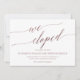 Estes elegantes cartões de anúncio de elopemento de ouro rosa têm um belo e simples design. A design cor-de-rosa-pincelada apresenta uma carta minimalista decorada com tipografia da folha de ouro rosa-falso romântica e caprichosa. O cartão diz "Nós Eloped". Personalize a placa com os detalhes do seu casamento e use a seção modelo na parte traseira para obter informações de recepção, para anunciar uma mudança de endereço ou para quaisquer outros detalhes que você gostaria de compartilhar. Nota: Este design não apresenta folha de ouro rosa real. É um gráfico de alta qualidade feito para se parecer com folha de ouro rosa.