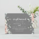 Este anúncio de elopemento de cinza rosa clássico tem um belo design rústico. O design apresenta elegantes rosas rosa poeirentas e poeirentas e folhagem verde, perfeitamente reunidas em belos buquês com fundo de cinza. Personalize a placa com os detalhes do seu casamento e use a modelo na parte traseira para anunciar uma alteração de endereço, informações de recepção ou quaisquer outros detalhes que você gostaria de compartilhar.