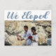 Na moda Simples Trendy Photo Elopement Anúncio Anúncio Cartão de Estilo de Saudação Anuncie suas núpcias como um casal recém-casado. A frase "Nós Eloped" está em belo texto. A maior parte do cartão, exceto o texto, é editável, embora você possa substituir essa imagem assim como a foto de casamento. Atualize a mensagem ou escreva uma delas para uma placa verdadeiramente personalizada que fale volumes.