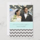 Cartões com fotos de anúncio em diversão e modernos padrões azul-turquesa azul-turquesa, cinza e chevron retro zigzags, totalmente personalizáveis com seus nomes, fotos de casamento e detalhes de casamento, a maneira perfeita de anunciar que você fugiu para amigos e família. Disponível em uma grande variedade de produtos de casamento correspondentes.