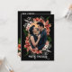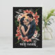Anuncie o seu noivado com um cartão marcante e artisticamente elaborado que capture perfeitamente a sua história de amor. A frente mostra a sua foto emoldurada por flores dramáticas em tons profundos e exuberantes contra um fundo escuro e sombrio, misturando elegância com um toque ousado. O verso convida amigos e familiares a se juntarem à sua jornada com um espaço para compartilhar a história do seu noivado. Este design é ideal para casais que desejam um anúncio tão cativante e inesquecível quanto o seu próprio romance.