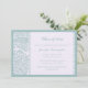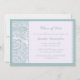 Este anúncio de festa de formatura azul de tendências 5x7 pode ser usado para convidar familiares e amigos para a cerimônia de graduação ou para uma festa para celebrar a formatura. Na frente, há um design azul de paisley azul no lado esquerdo com seus detalhes de cerimônia/festa facilmente personalizáveis no lado direito. Gráficos por Designs Dotted Daisy no MyGrafico