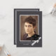 Comemore as conquistas de seu aluno de graduação com este moderno cartão de convite para a graduação do anúncio de fotos, com um retrato de graduação de sua escolha, enquadrado por uma simples cinza e uma fronteira branca, e embelezado com um boné de formatura e um diploma que você pode personalizar com o ano de graduação. Personalize as costas com os detalhes da celebração e as informações de contato.