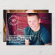 Com duas fotos do seu formando, uma na frente e atrás, este design ousado é perfeito para um formando moderno. O 'carimbo' redondo no canto superior esquerdo é facilmente personalizado com o ano de graduação e todos os detalhes do anúncio/partido estão na frente. Lembrança de um antigo cartão postal, este design é contemporâneo e único - assim como o seu formando.