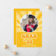 Um anúncio de graduação com uma foto personalizada e uma tipografia de estilo retrorreflector de cor amarela é uma forma única e na moda para anunciar sua formatura aos amigos e à família.