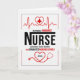Um anúncio simples, mas ousado, para que a família e os amigos saibam que se formou na escola de enfermagem! Feito em vermelho e preto em branco de linho com seu nome na frente.