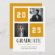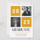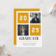 Celebre o marco do seu formando com este anúncio amarelo de graduação da colagem de fotos modernas. Este design apresenta dois espaços reservados para fotos e um layout ousado e variado com o ano exibido de forma destacada. Personalize-o com o nome e o segundo grau do seu formando. Um na moda e uma maneira contemporânea de anunciar a sua conquista!