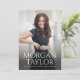 O anúncio de graduação minimalista apresenta duas fotos com um nome elegante e gracioso da serif, mais detalhes no verso, simples e sofisticado, personalize-o com sua própria foto e informação.