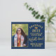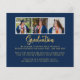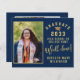 Cartão de Anúncio de Graduação de Fotografia do Script Dourado Azul-Escuro 4 em Branco. Felicita o formando pelo seu bem merecido sucesso e celebra-o com este belo e respeitador do orçamento. Observe que ENVELOPES NÃO ESTÃO incluídos. As dimensões desta placa são de 4,5" x 5,6" e ajustado bem em um envelope A6 de 4,75" x 6,5", se você tiver. Ou você pode selecionar uma opção de envelope. Todos os textos estão pré-organizados para que você personalize fácil e rapidamente com seus próprios detalhes.