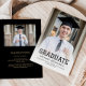 Anúncio de graduação com fotos personalizadas na frente e no verso. A palavra "Formando" aparece em uma tipografia negra ousada, com um olhar esportivo ideal para o atleta estudantil, com o nome do formando, a escola e o ano de graduação abaixo em sans serif. A parte traseira apresenta uma foto horizontal, com espaço para detalhes sobre a conquista do seu formando e planos futuros em texto dourado sobre fundo preto. Uma boa escolha para segundo grau ou formandos.