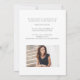 O anúncio de graduação minimalista apresenta 2 fotos com elegante serif graciosa, mais detalhes no verso, simples e sofisticado, Personalize-o com sua própria foto e informação.