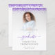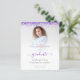 Um valor para o alternativo do ORÇAMENTO em tamanho menor de 4,5 x 5,6" de semirbrilho de 110 lbs, que é de espessura semelhante a um cartão postal (no entanto, não é adequado para uso como cartão postal). POR FAVOR, NOTE que existe UM por folha. Orçamento 2024 Formando Anúncio de Graduação de Glitter Púrpura Fotográfica. As bordas reluzentes e legantes estão no topo de ambos os lados. Formando está em um roteiro de na moda com traços elegantes. Personalize facilmente o texto de acordo com as suas necessidades, inclusive no sentido inverso, e substitua a imagem de exemplo pela sua. Para manter o olhar minimalista contemporâneo dessa design, uma foto com fundo colorido claro funcionará bem.