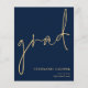 NOTA: há duas opções de papel a escolher para este tamanho (4,5 x 5,6") na faixa de Orçamento. Para este produto, eu recomendaria o semibrilho, que é um estoque de cartão de 110 gsm, semelhante em espessura a um cartão postal. A opção Satin é um papel muito mais fino, 80gsm. O padrão é definido como semirbrilho. POR FAVOR, NOTE que existe UM por folha. Anúncio do Formando Dourado do Marinho de Script de Orçamento Esta simples tipografia dourada no design azul-marinho clássico para anunciar as notícias do seu formando tem um script de escrita manual de conjunto informal para o cabeçalho principal, formando e fácil personalização da tipografia no lado inferior direito com os seus detalhes e também a sua mensagem no verso.