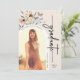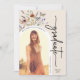 2 fotos - Anúncio de Formando Floral Elegante. Este convite para na moda e festa de formatura moderna apresenta lindas flores silvestres de cor d'água pintadas manualmente, organizadas como um adorável buquê e um elegante roteiro de caligrafia. O verso inclui uma segunda foto de graduação para personalização. Encontre produtos correspondentes na Coleção de Graduação Boho Wildflower.