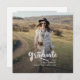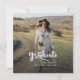 Um anúncio de graduação de 2025, moderno e elegante, com duas fotos da faculdade ou do formando segundo grau. Essa tendência e o script branco casual aparecem em uma sobreposição. Adicione as fotos do formando na frente e no verso e edite o texto na parte traseira para fazer deste cartão um simples anúncio de graduação ou um convite de festas de formando.