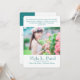 Um belo anúncio de Formando fotográfico com um tema de escritura criado especialmente para estudantes que se formam em segundos graus Cristãos, Academia ou Faculdades. As fotos foram projetadas para serem sem bordas, estendendo-se totalmente a qualquer lado da placa. A parte de trás tem um design de círculo abstrato em cores coordenadas. Também disponível em cor-de-rosa, azul e rosa. Esta placa foi projetada para usar as cores de texto fornecidas (porque você não pode personalizar o verso da bíblia no topo)