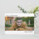 Um design minimalista com uma fotografia horizontal centrada de borda a borda com texto personalizável de nome de formando acima e ano de classe abaixo. A parte de trás está bem definida com o convite dos pais, a graduação em roteiro, depois os detalhes da graduação de localização, tempo, etc, enquadrado por uma fina estrutura de linha preta.