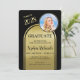 Este anúncio elegante de Festa de formatura apresenta um arco duplo com letras negras contra um fundo de ouro escovado e uma sala para uma foto da honra desta ocasião especial. A parte traseira do cartão tem espaço para três fotos adicionais. Muito para personalizar para se adequar à sua honra. Qualquer pergunta sobre design, basta enviar um chat ou um e-mail para charmdesignstudio@rcn.com e teremos todo o prazer em ajudar. Contacte-nos também se pretender que a cor de fundo seja alterada para uma cor escolar ou para uma cor favorita.