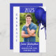 Anúncio de formatura personalizado feito em azul e branco, com gráficos de balões azuis. Personalize este anúncio elegante com a foto e as informações do seu graduado.