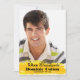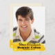 Um banner encardido amarelo ensolarado na parte inferior da sua foto contém o seu anúncio de formatura. Não se esqueça de mudar o ano para refletir o seu.
