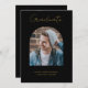 Um moderno cartão de anúncio de formatura preto e dourado com design de arco e sua escolha de 2 fotos. Personalize o texto e faça-o seu!