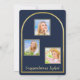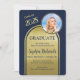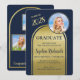 Este elegante anúncio de festa de formatura apresenta um arco duplo com letras azuis contra um fundo dourado escovado e um espaço para uma foto do homenageado desta ocasião especial. O verso do cartão tem espaço para três fotos adicionais. Muito para personalizar e tornar apropriado para o seu homenageado. Qualquer dúvida sobre o design, basta enviar um chat ou um e-mail para charmdesignstudio@rcn.com e teremos prazer em ajudar. Entre em contato conosco também se desejar que a cor do fundo seja alterada para uma cor da escola ou cor favorita.
