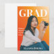 Anuncie a conquista do seu graduado de uma maneira direta e moderna com um cartão de anúncio em estilo de revista. Use o BG Remover da Zazzle, seu próprio software de edição de fotos ou smartphone para remover o fundo da foto. Adicione o ano de formatura, escola e nome do graduado. Se desejar, escolha a opção "Adicionar Texto" para adicionar uma citação, planos, etc. O fundo laranja varia de claro a escuro, proporcionando mais ênfase para a foto do estudante.