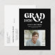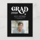 Cartão postal de anúncio de formatura elegante em preto e branco com tipografia ousada e tendência. +++++++ Fácil de personalizar com foto do formando, nome, escola, ano, endereço do remetente e seu texto em ambos os lados! ++++++++++++++ Se precisar de uma cor ou combinação específica, por favor, envie uma mensagem ao designer através do botão MENSAGEM abaixo!