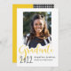 Este anúncio de graduação caprichosa apresenta um ponto para sua foto favorita. A palavra, Formando em letras grandes amarelas brilhantes com design bolinhas preto e branco
