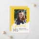 Este anúncio de graduação caprichosa apresenta um ponto para sua foto favorita. A palavra, Formando em letras grandes amarelas brilhantes com design bolinhas preto e branco