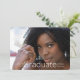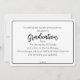 Belo Anúncio de Graduação minimalista moderno com texto de letra fina branca na frente e informações de Graduação bem dispostas no verso com "graduação" em letra cursiva com detalhes acima e abaixo. Você pode personalizar as informações para faculdade ou ensino médio.