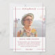 Em um anúncio amoroso de fotos em um design minimalista limpo com fundo branco e detalhes vermelhos. Personalize com uma foto do seu amado, seu nome, anos de vida, e um texto sobre sua vida e espírito.
