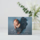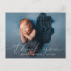 Estilo elegante e moderno de caligrafia lê OBRIGADO sobre sua foto favorita da família ou do bebê, juntamente com o nome da criança e a data de nascimento, para um perfeito cartão postal de anúncio de nascimento minimalista para enviar aos familiares e amigos. No verso há espaço para endereço de devolução e mensagem personalizada.