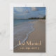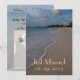 Os recém-casados podem anunciar casamentos de praia românticos e recens casados com este cartão com fotos de casamento. Carregue sua própria noiva e foto do noivo na modelo, uma design mostrando uma praia tropical arenosa com água azul clara. Se precisar de ajuda para criar o seu design personalizado, sinta-se à vontade para me contactar através da minha galeria Zazzle.